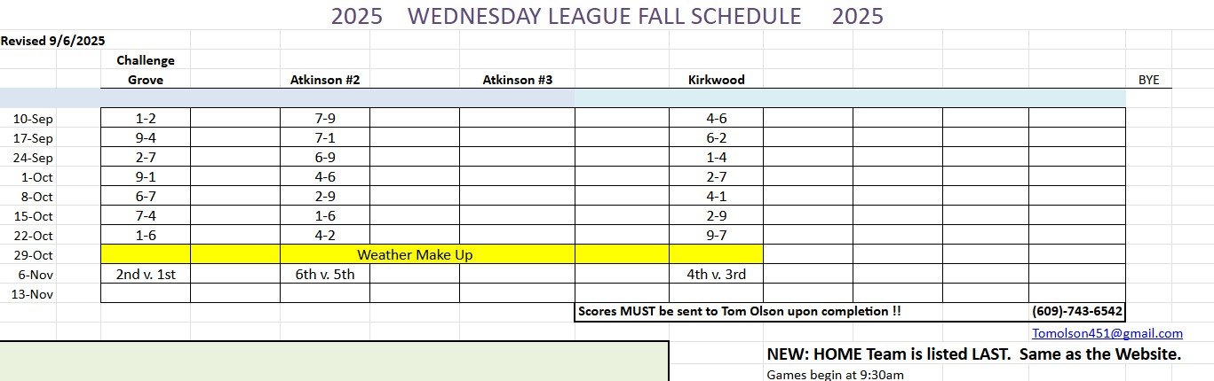 Wednesday League Fall Schedule 2025